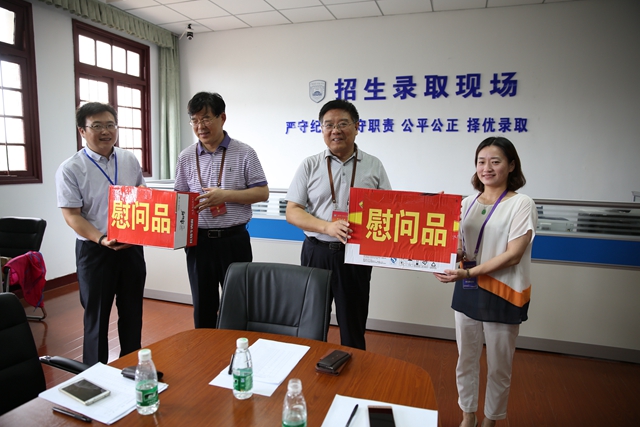 7月20日上午,党委书记李洪天,院长王仁雷,党委副书记、副院长程建军等来到我校2016年普高招生录取现场,看望、慰问招生工作人员,了解招生工作进展情况。
