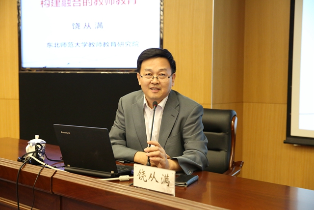 报告会上,饶从满教授从中国教师教育改革的进展、如何理解融合的教师教育和如何构建融合的教师教育三个方面出发,对教师教育进行了深入剖析和解读。讲座案例丰富,学术氛围浓厚、学术创新性强,与会人员深受启发,受益匪浅。