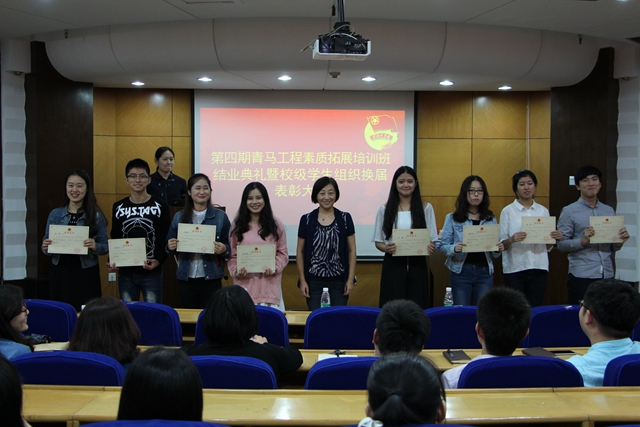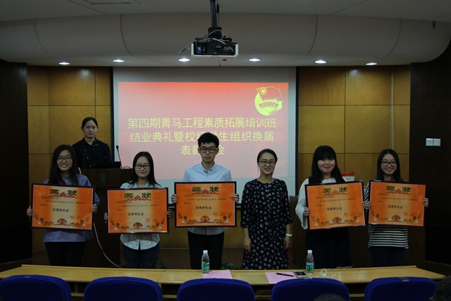 9月28日下午,第四期“青马工程”素质拓展培训班结业典礼暨校级学生组织换届表彰大会在草场门校区隆重举行,党委副书记、副院长程建军出席会议,团委副书记刘姝主持会议。