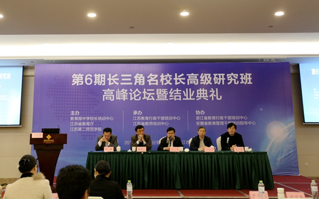 11月1日至2日,由教育部中学校长培训中心、江苏省教育厅、我校主办的第6期长三角名校长高级研究班高峰论坛暨结业典礼在南京举行,历时一年的上海市、江苏省、浙江省、安徽省四地联合培养名校长的“长三角名校长联合培训”第6期学员培训顺利结业。