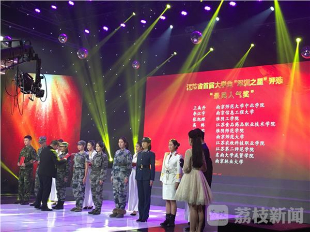 11月27日下午,江苏省首届大学生“军训之星”颁奖典礼在省广播电视总台教育频道举行。省教育厅副厅长朱卫国出席活动,92所高校的相关负责同志、指导教师和参赛选手参加颁奖典礼。我校生命科学与化学化工学院退役女兵郑迅同学参加该比赛并获评江苏省首届大学生“军训之星”最具人气奖,我校获得“优秀组织奖”。