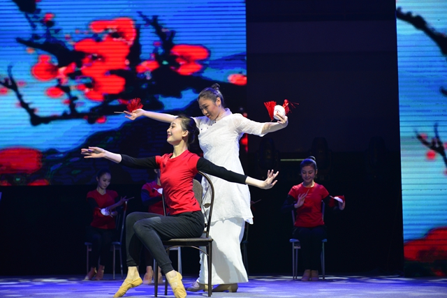 晚会在集体舞蹈《盛世鸿姿》中拉开帷幕。舞蹈《采薇》、《寻梦》为我们缓缓展开了一幅美轮美奂的画卷,动情的舞姿,让人们从经史子集中感受着历史留下的文化基因。女子新民乐《奇迹》,澎湃的音乐,动感的旋律,激情的舞蹈将晚会带入了热情似火的情境中。孟萌老师女高音独唱《祖国万岁》、陈霄老师钢琴独奏《浏阳河》、王建老师男高音独唱《我的太阳》,或歌声洪亮,或琴声悠扬,把晚会推向了一个又一个高潮。鼓乐戏《夜深沉》、戏曲集锦《我的家乡在南京》、《白水滩》,则集中展现出了我校“传统戏曲进校园”的教学成果。水墨太极《送福》将太极、书法、剪纸三种传统艺术文化融合在一起,让大家感受到别样的艺术风格,那一声声祝福将气氛烘托得格外热烈。
