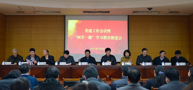 1月4日下午,我院在草场门校区召开党建工作会议暨“两学一做”推进会。党委书记李洪天、院长王仁雷,院领导程建军、张勤、王国强、祝兴成、潘文、王晓天、姚振标、徐国华以及各部门负责人和党总支书记参加会议,会议由党委副书记、副院长程建军主持。