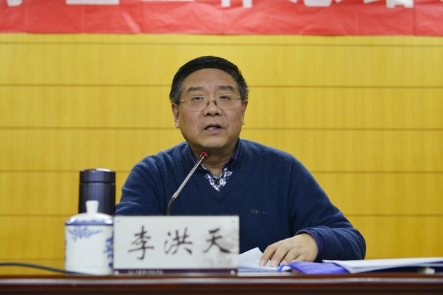 李洪天发表讲话。他指出,这次会议,既是一次回顾全年学生工作成绩经验的总结会、表彰会,也是一次高校思想政治工作会议精神的学习会、传达会,更是一次谋划学生工作新思路新举措的动员会、部署会。在充分肯定过去一年来我校学生工作取得的成绩的同时,李洪天就做好2017年乃至今后一个时期的学生工作提出三点意见。一是要以贯彻落实全国高校思政工作会议精神为重点,切实增强做好大学生思政工作的紧迫感、责任感、使命感。要自觉用习近平总书记重要讲话精神统一思想认识,要准确把握学习贯彻落实会议精神的工作重点,要认真执行学习贯彻落实会议精神的基本要求。二是要以完善职业发展和梯度建设机制为抓手,大力推进辅导员队伍的职业化、专业化、专家化。要完善政策条件保障,推进辅导员队伍职业化,要提高培养培训成效,推进辅导员队伍专家化,要加强研究创新支撑,推进辅导员队伍专家化。三是要以贴近青年学生学习生活就业实际为关键,有效提升学生工作的系统性、针对性、实效性。学生管理服务推进精细化、提升系统性,心理健康教育推进专业化、提升主动性,招生就业工作推进科学化、提升针对性,志愿服务实践推进创新化、提升实效性,校园文化建设推进品牌化、提升辐射性。他强调,学生工作事关办学方向和人才培养质量,事关校园与社会和谐稳定,事关学生和家庭的幸福安详,意义重大,任务艰巨。学生工作建设没有休止符、总是进行时、永远在路上。他希望全体学工人以高度的责任感、使命感、紧迫感,开拓创新,求真务实,认真完成学生管理服务各项目标任务,为我校“十三五”事业发展和迎接四大评估奠定坚实的工作基础,在高水平有特色新型师范学院建设进程中不断取得新的成绩、作出新的贡献。