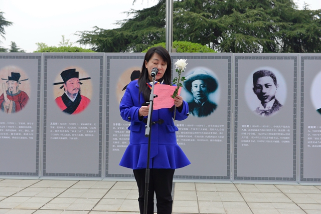 刘继红致词。她代表全校师生,向长眠于华夏大地的革命先烈表示深深的怀念,向在民族解放战争中冲锋陷阵、浴血奋战的老一辈革命家致以崇高的敬意。她强调,我们应当始终牢记自己是中华民族伟大复兴的追梦者和筑梦者,自觉把使命放在心上、把责任扛在肩上,以饱满的热情、高昂的斗志,全身心投入到工作和学习中去,投入到高水平有特色新型师范学院建设的实践中去,为全面建成小康社会、加快推进社会主义现代化的宏伟事业贡献自己的力量。她鼓励教育工作者和新时代大学生,要团结一心、锐意进取,把先烈们留下的珍贵精神财富代代相传,努力创造无愧于时代、无愧于人民、无愧于先辈的新业绩。