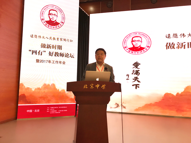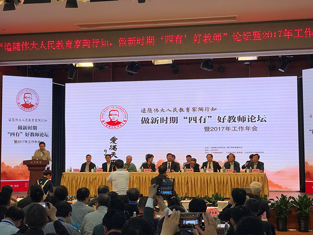 4月27-28日,由中国陶行知研究会、陶行知教育基金会主办的“追随人民伟大教育家陶行知、做新时期‘四有’好教师”论坛暨2017年工作年会在北京举行。校党委书记、中国陶行知研究会副会长、江苏省陶行知研究会会长李洪天出席会议并主持28日大会论坛。
