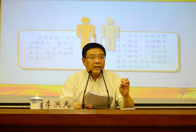 李洪天详细解释了政治的定义,明确了讲政治的内涵,系统阐述了共产党人为什么要旗帜鲜明讲政治。他指出,讲政治是具体的而不是抽象的,是行动的而不是语言的,全院党员干部必须从坚定信念、维护中央权威、严守纪律规矩、发扬优良作风、严肃党内生活、体现模范作用六个方面把讲政治具体化。李洪天强调,旗帜鲜明讲政治,必须切实加强政治历练,锤炼坚持党性,使讲政治的要求由外部转化为内生自觉。面对新形势新要求,全院党员干部必须不断增强讲政治的高度自觉,注重加强理论学习、做好育人工作、抓住关键少数、加强实践锻炼,把讲政治的要求落实在教书育人、管理育人、服务育人各个环节。李洪天指出,从严管党治校没有休止符、总是进行时、永远在路上。他要求全体党员,以高度的责任感使命感紧迫感,开拓创新,求真务实,认真完成“两学一做”学习教育常态化制度化各项目标任务,为我院“十三五”事业发展奠定坚实的工作基础,在建设高水平有特色新型师范学院和全国一流教育科研基地的进程中不断取得新的成绩、作出新的贡献。