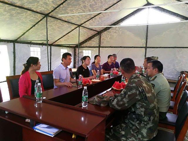 8月18日,副校长刘继红一行赴浦口校区慰问正在我校开展野外集训的省武警总队南京支队的250多名官兵。学工处、保卫处、资产经营总共公司相关负责人陪同前往。武警南京支队副支队长陈朝兵、参谋长薛振林热情接待。