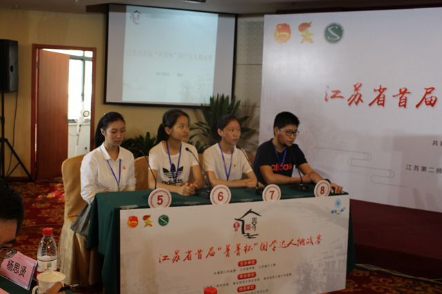 8月26日至27日,由共青团江苏省委、江苏省学生联合会、江苏省少先队工作委员会主办的江苏省首届“菁菁杯”中小学生“国学达人”挑战赛在我校成功举行。团省委副书记蒋敏,我校副校长刘继红,团省委中少部部长张志方,团省委中少部副调研员徐美华,我校团委副书记刘姝等出席活动并为获奖选手颁奖。江苏教育出版社编审、江苏省教育学会常务理事姚卫伟,中学生杂志主编、中国国学研究会副会长王荣伟,我校文学院副院长杨思贤等担任比赛评委。
