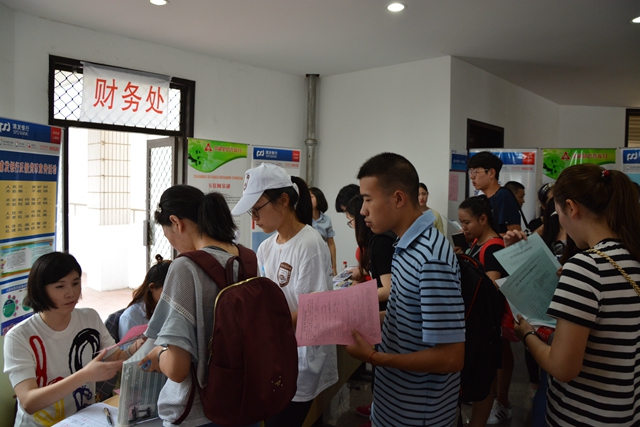 为给新生和家长提供温馨周到的入学服务,学校坚持“以生为本、人性关怀”的基本理念和“热情简捷、细致周到、安全有序”的工作要求,各部门、各二级学院通力合作,密切配合,把工作做精、做细、做实,为新生和家长提供优质的服务保障。学校统一安排大客车奔赴汽车东站等地迎接新同学。学工处安排专门老师在接站点负责接站工作,并有学生志愿者随车往返于车站和校区之间,做到车站和校区的无缝对接。各学院在新生接待点由专人引导,实行"一站式"注册,简化报到流程,缩短注册时间,提供人性化的服务。财务处全员上阵,他们业务熟练、服务耐心,缴费工作迅速而准确。招就处用微信推送“新生入学指南”,方便新生了解报到流程。团委设立学生咨询服务台,组织70多名学生志愿者负责新生接待各项工作。保卫处调动一切力量,全力为迎新保驾护航,除了指挥车辆进出校园、校内巡逻外,还进行防盗、防诈骗、防火灾的安全教育。后勤处和资产经营总公司在校园内设置多个服务点,并提前做好餐饮、卫生、维修等后勤服务工作。