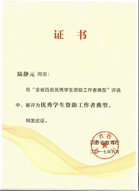 日前,省教育厅办公室发布《关于公布“全省百家学生资助工作单位典型”和“全省百名优秀学生资助工作者典型”评选结果的通知》(苏教办助﹝2017﹞ 5号),我校获评全省百佳学生资助工作单位典型,学工处陆静元被评为全省百名优秀学生资助工作者典型。同时,在2016年全省学生资助工作绩效评价中,我校连续第七年获得优秀,并获资助工作奖补经费20万元,累计经费135万。