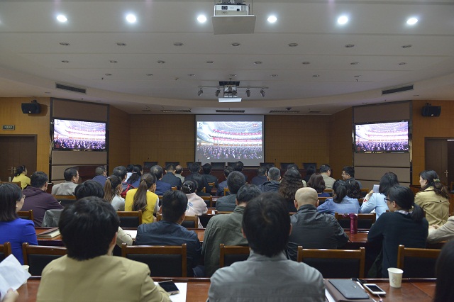 10月18日上午,举世瞩目的中国共产党第十九次全国代表大会在北京人民大会堂隆重开幕。为在全校师生员工中深入营造学习宣传贯彻党的十九大精神的良好氛围,我校组织全校师生员工收看了党的十九大开幕会。