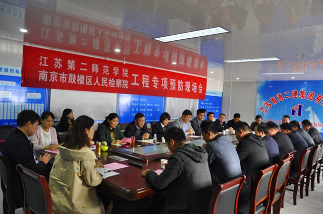 此次会议是我校和鼓楼区检察院开展预防职务犯罪“校检共建”工作的重要内容。双方将共同推进我校溧水校区工程建设透明、健康、有序进行。