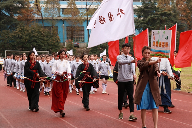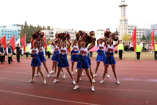 开幕式上,在昂扬雄浑的运动员进行曲中,五星红旗庄严出场,校旗队、校徽队、红旗队、鲜花队依次亮相,各二级学院运动员方队精神昂扬、步伐整齐、口号响亮地走过主席台,他们进行了各具特色的表演,充分展示出我校学子积极向上、团结奋进的精神面貌。