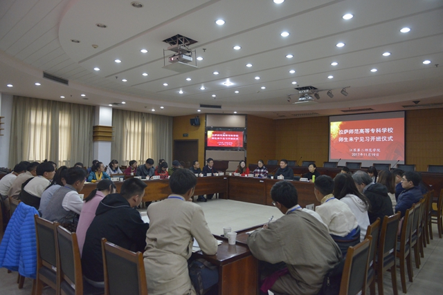 11月19日上午,我校在草场门校区举办2017年拉萨师范高等专科学校师生来宁见习开班仪式,副校长潘文出席会议。拉萨师范高等专科学校领队教师曹艳华、韩美超和28名见习学生,我校相关学院、教师教学发展中心、教务处负责人及相关人员参加开班仪式,仪式由教务处处长徐新萍主持。