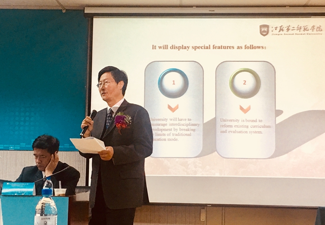 10日,王建出席台湾屏东大学四周年校庆大会并和屏东大学校长古源光互赠纪念品。在屏东大学校庆系列活动“大学•未来”校长圆桌论坛上,王建作了主题演讲,并和参加论坛的海内外多所院校校长进行了良好互动。
