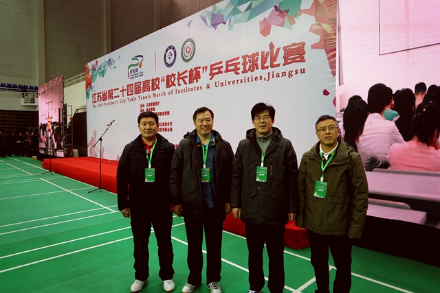 在12月16日、17日举行的第24届江苏省高校“校长杯”乒乓球比赛中,我校由党委书记王仁雷、校长王建,副校长祝兴成、潘文,纪委书记陈金如组成的代表队奋力拼搏,赛出了水平,赛出了风格,以小组第二的身份晋级第二阶段的排名赛,最终获得甲组(本科)第16名的好成绩。这是我校参加“校长杯”以来取得的最好成绩,我校代表队被认为是进步最快的球队之一。