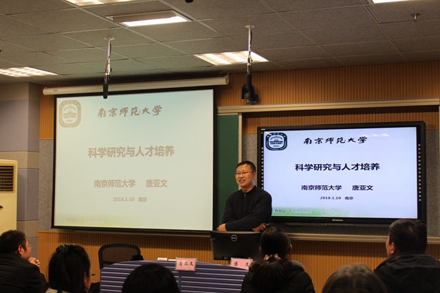 为帮助理科青年教师更好地处理教学与科研的关系,助力他们成长为一名优秀的高校教师,1月10日,教师教学发展中心组织开展“科学研究与人才培养”主题教学研讨活动,邀请南京师范大学化学与材料科学学院唐亚文教授来校作专题报告。来自生化学院、物电学院、城环学院和数信学院的26名青年教师参加研讨活动。副校长潘文全程参与并主持研讨活动。