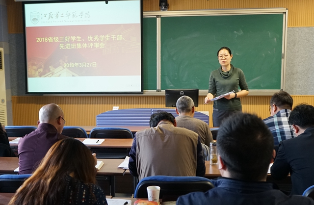 3月27日下午,我校在草场门校区召开2017年度省级三好学生、优秀学生干部、先进班集体校内评审会。校学生工作指导委员会委员担任评审会评委。会议由学工处处长刘莹主持。