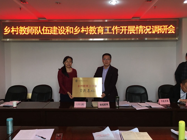 在调研过程中,我校汇报了定向生培养情况(含定向生电子档案、综合考核办法等);与连云港市教育局(1个)、各县(市区)教育局(6个)及乡村中小学幼儿园(8个)签署“乡村教育工作站”共建合作协议,并举行了授牌仪式。与此同时,调研了当前乡村中小学幼儿园教师队伍建设中存在的主要矛盾、需要研究解决的突出问题;听取了对方对我校乡村教师人才培养规格、培养模式、培养方案、职后培训方式的要求和建议;双方还就我校乡村定向师范生实习、见习等实践教学工作和实践教学过程中指导教师的安排、2017级小学教育专业(乡村教师定向培养)主辅修学科确认、乡村定向师范生综合考核办法的推进策略等事宜达成共识。