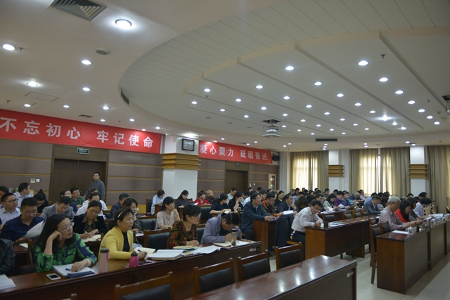 4月28日下午,我院举行党委理论学习中心组(扩大)学习会,专题学习新时代教师队伍建设及教师教育的有关文件。省教育厅师资处处长崔春霞作辅导报告,院领导王建、张勤、王国强、刘继红、王晓天、姚振标,全体中层干部参加学习会,会议由院长王建主持。