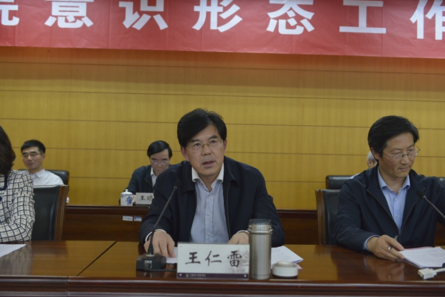 王仁雷强调,意识形态工作是硬责任,要全员动手、齐心来做,久久为功地抓。全院上下必须把意识形态工作的领导权管理权话语权牢牢掌握在手中,任何时候、任何情况下都不能旁落;必须保持清醒的头脑,严格履行全面从严管党治校的各项职责,切实承担意识形态工作主体责任,为党和国家坚决守好阵地;必须坚持立德树人、强化思想引领,把培育和践行核心价值观融入教书育人全过程,为中华民族伟大复兴提供人才保障和智力支持。