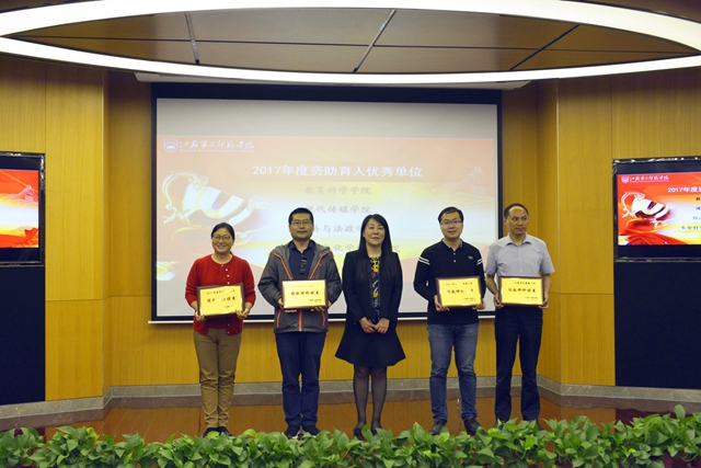 会议表彰了校2018年度“助学•筑梦•铸才”学生书法、篆刻作品比赛获奖者、2017年度二级学院资助绩效考核资助育人“优秀单位”、2018年度江苏省“优秀学生干部”、“三好学生”、2017年度国家奖学金获得者。与会领导为获奖的个人和单位颁发了荣誉证书。