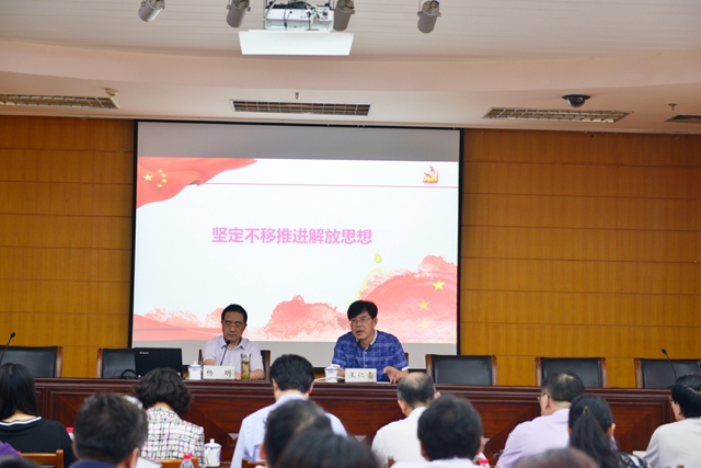王仁雷作总结讲话。他指出,本场报告高屋建瓴、系统全面、意义深远,具有很强的理论性和现实意义。他要求与会人员进一步领会解放思想的重大意义,并迅速将报告精神传达到每位党员干部,在全院上下掀起解放思想的新热潮,兴起抢抓机遇的新势头,树立奋发作为的新精神,努力开创新时代我院事业高质量发展的新局面。