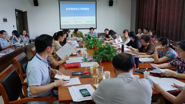 会上,学生工作各职能部门对暑假工作作了总结,对近期主要工作及九月份计划开展的重点工作进行了说明和部署。