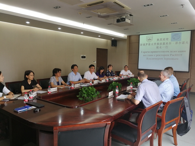 9月18日,新俄罗斯大学校长泽尔诺夫一行访问我校。校长王建、副校长徐国华代表学校接待了代表团一行。国际处、教育科学学院、外国语学院、美术学院负责人参加会谈。