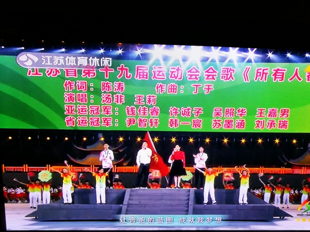 9月21日晚,江苏省第十九届运动会开幕式在扬州举行。我校校友、青年歌唱家汤非与同为空政文工团的青年歌唱家王莉一起,饱含深情演唱了本届省运会会歌《所有人都成功》和主题歌《扬州梦》。当璀璨的灯光将扬州体育公园主场馆照亮时,当“怀抱着长江,运河水相望。你在等什么?还不来好好地相聚一场……”动感旋律响起时,台上台下成为了一片欢乐的海洋。
