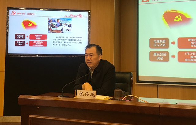 承接上一次讲座的内容,祝兴成通过对四渡赤水河、巧渡金沙江、强渡大渡河、俄界新决策等重要历史事件的讲述,带领大家重温了红军在长征中表现出来的坚定的共产主义理想、革命必胜的信念、艰苦奋斗的精神和一往无前、不怕牺牲的英雄气概。