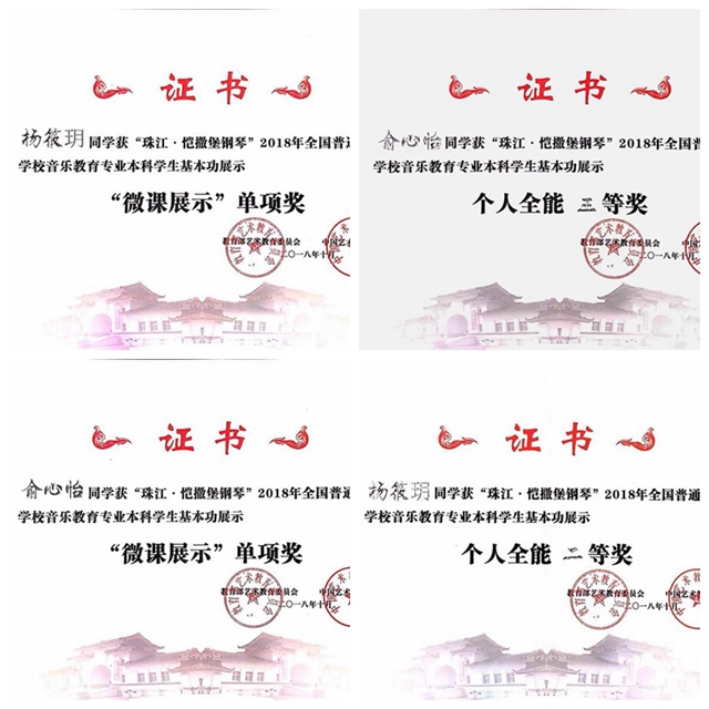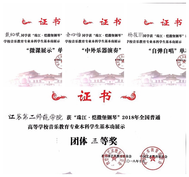 在10月22日至26日教育部主办的第十届“珠江· 恺撒堡钢琴”2018年全国普通高等学校音乐教育专业本科生基本功展示活动中,首次代表江苏省参赛的我校音乐学院代表队获得团体三等奖和七个单项奖。