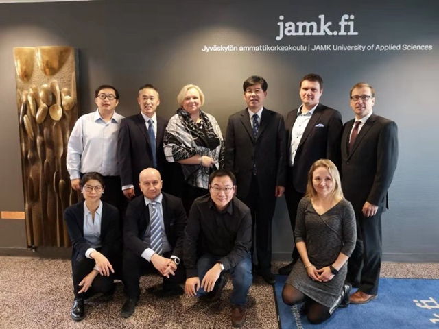 10月23日访问芬兰于韦斯屈莱应用科技大学。代表团与该校校长Jussi Halttunen,科技学院院长赖博思,国际合作交流部的院长云迪莫,全球教育服务大中国区经理何翔等进行了会谈。王仁雷介绍了我校近年来的发展和未来规划情况,双方就学校间教师教育的职前与职后培养、学生互访及生物质资源的综合利用等方面进行了深入的探讨,谋求在人才培养与科学研究等方面的有效合作。