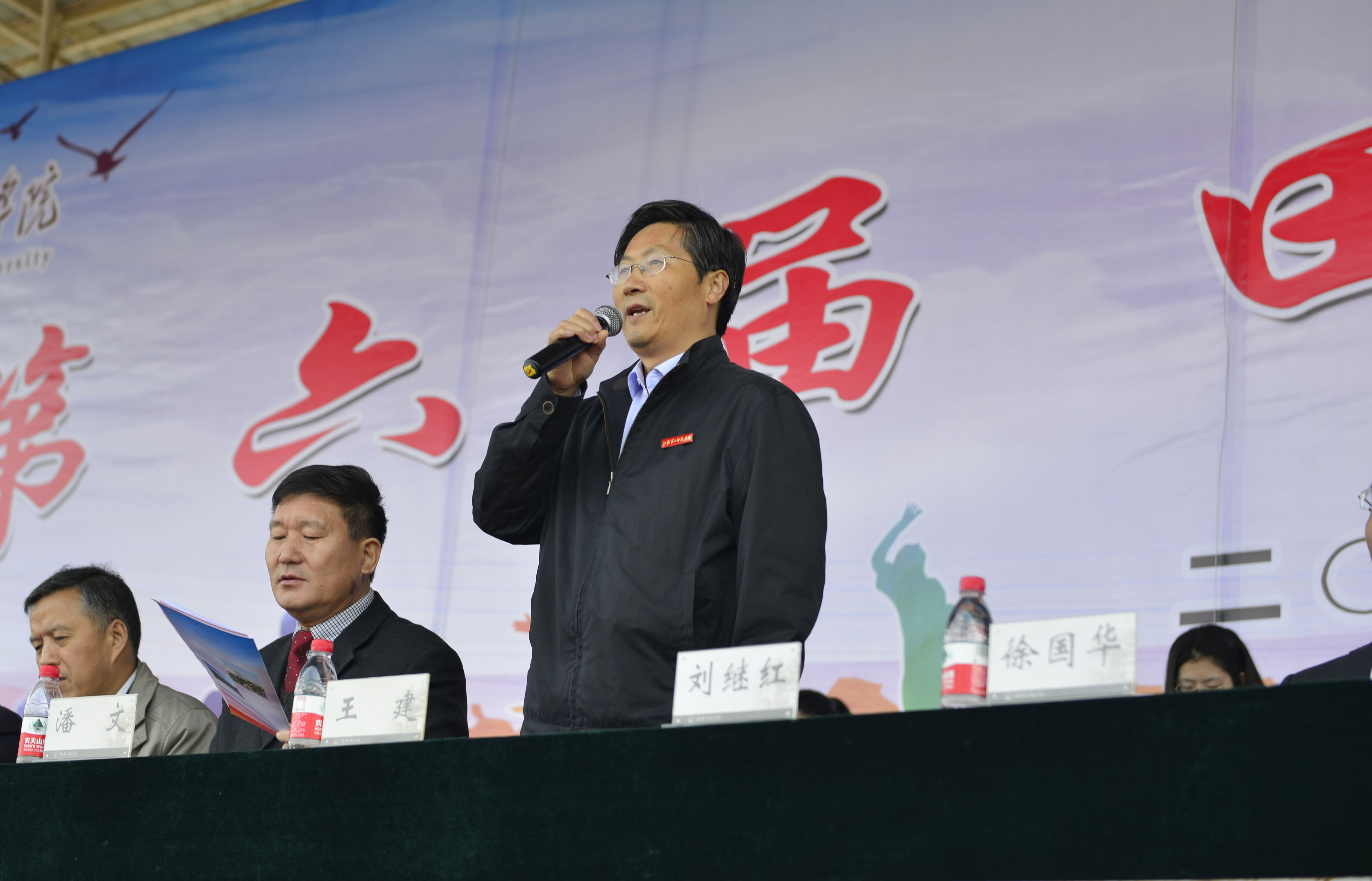 经过一天的紧张比赛,第六届田径运动会落下帷幕。下午4:30,举行闭幕式暨颁奖大会。校领导刘继红、刘贵友出席大会,体育部主任张彪主持大会。副校长刘贵友公布本届运动会“优秀表演奖”、“优秀组织奖”、“优秀裁判员”、“优秀运动员”获奖名单,并为他们颁奖。刘继红为团体总分前六名的学院和各奖项代表颁奖,并致闭幕词。她说,此次运动会参与面广、项目多样、赛事集中,全体师生团结友爱、文明参赛,场上奋力拼搏,场边加油鼓劲,比出了水平,赛出了风格,不但检阅了我校体育运动发展的水平和实力,也增强了全校师生员工的凝聚力和向心力,充分展示了我校师生员工良好的精神风貌,取得了体育竞技和精神文明双丰收。她希望大家进一步增强健身意识,积极投身学校体育运动,以更强健的身体、更饱满的精神和更坚强的意志投入到今后的工作、学习和生活中去,为我校事业改革发展再立新功。