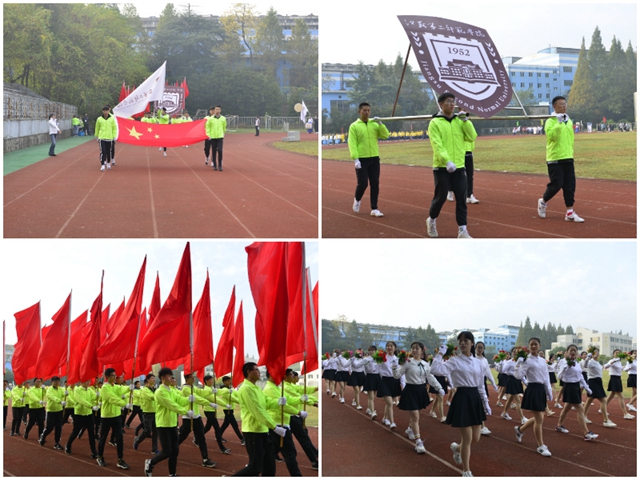 开幕式上,在昂扬雄浑的运动员进行曲中,校旗队、校徽队、红旗队、鲜花队精神饱满、气宇轩昂地走过主席台。各学院学生方阵在主席台前进行了精彩的表演,彰显了学科特色,展现了多才多艺、积极向上的精神面貌。