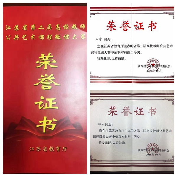 日前,我校在江苏省第二届高校教师公共艺术课程微课大赛中喜获佳绩,两位教师在决赛中分别获得本科组二等奖和三等奖。这是我校教师连续第二年进入决赛并斩获佳绩。
