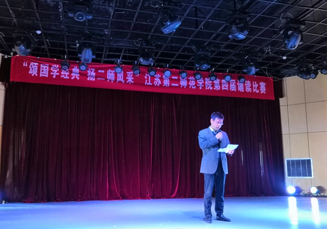 为传承和弘扬中华优秀传统文化,建设书香校园,12月2日下午,我校在草场门校区举办“颂国学经典,扬二师风采”第四届诵读大赛。副校长刘贵友出席大赛。本次大赛由图书馆主办,团委、教师教学发展中心协办,图书馆学生管理委员会承办。