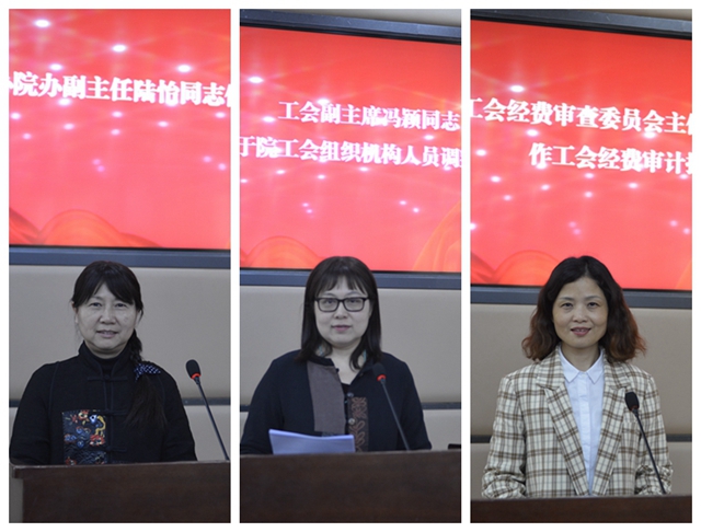 工会副主席冯颖作工会工作报告。工会经费审查委员会主任张伟作工会经费审计报告。党办院办副主任陆怡作提案工作报告。