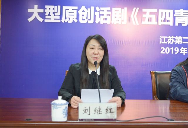 王建致辞。他说,2019年是建国70周年,“五四”运动100周年,为铭记奋斗历史、弘扬伟人精神,我校于2018年12月成功申报江苏2019年度艺术基金大型舞台资助项目——大型原创话剧《五四青年周恩来》。目前该剧的排演工作取得阶段性成果,即将公演,这是我校文化建设上的又一件大事、喜事,也是大型原创戏剧在重大题材方面的一次新尝试、新突破。我校高度重视文化建设,始终把繁荣校园文化作为各项工作的重要抓手。近年来,我校牵头成立江苏诗歌教育联盟和研究中心,启动京杭大运河江苏流域戏曲文化传承创新工程,获评中华优秀传统文化传承推广中心;取得全国大艺展最高奖1项、全国排舞联赛冠军5项、省大艺展特等奖2项,去年举办的《运河怀古》美术作品展和《水路·戏路·传承之路》成果展演广受社会好评,一个以中华优秀传统文化传承发展和艺术经典教育为主要目标的新型师范人才美育培养体系正逐步形成。《五四青年周恩来》是我校对建国70周年和“五四”运动100周年的一次隆重献礼,是担当文化传承创新使命的一次生动实践。