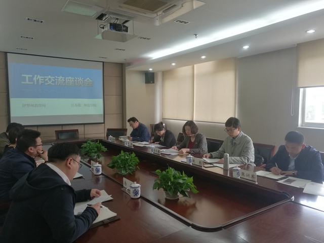 5月7日,伊犁州教育局党组书记李长春一行来我校,就伊犁州定向招生工作与我校开展座谈。我校招生就业处副处长司南、杨嵘和招生办公室工作人员参加会议。司南主持会议。
