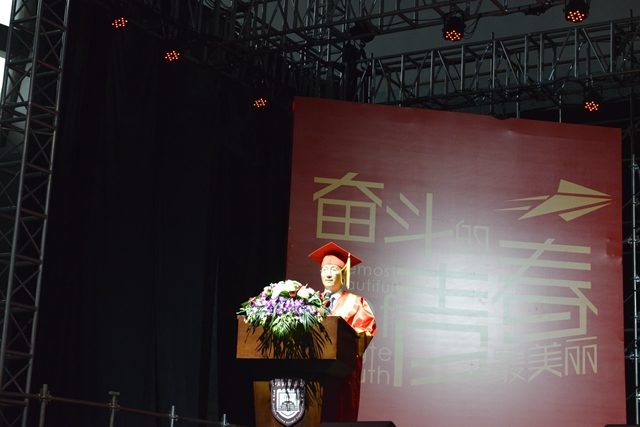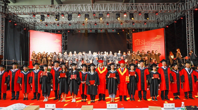 校领导、二级学院负责人、主要职能部门负责人为全体毕业生颁发了毕业证书,为每一位学士学位获得者拨正流苏、授予学位证书并合影留念。典礼在全场高唱《我和我的祖国》中圆满落幕。