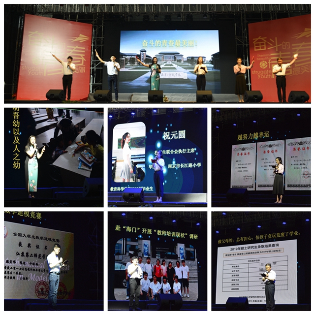 三位学生代表祝元圆、魏宏伟、宣洋同学,校友代表、鼓楼团区委挂职副书记、南京大学附属中学团委书记呙睿,家长代表、高级农艺师郭昌林,教师代表、学前教育学院党总支副书记姚苏平为全体毕业生上了一堂“梦想公开课”。