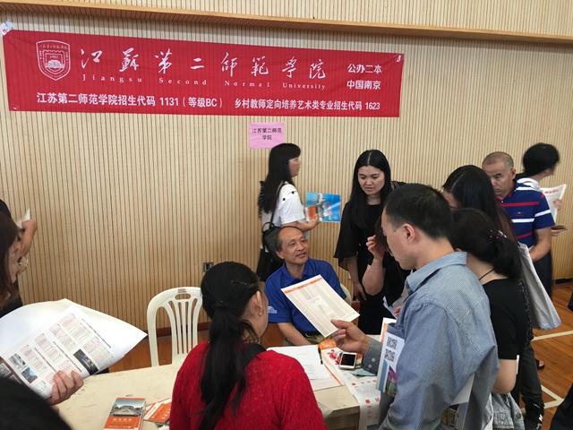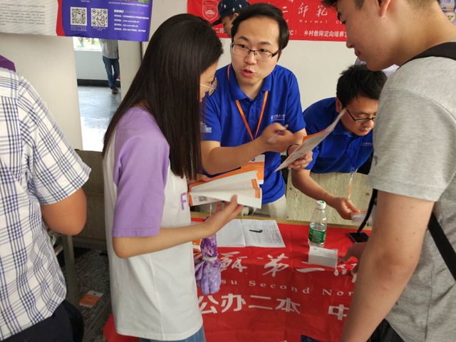 6月26日,上午,教科院副院长陈国庆、党总支副书记张志行以及郭松、张乐老师等一行前往淮安市淮阴师范学院参加省2019年高考考生职业生涯指导与志愿填报咨询会。在现场热心为众多前来咨询的考生及家长解答我校今年的具体招生政策及相关情况。下午则兵分三路,分别前往清江中学、淮阴师范学院附属中学、淮安市第一中学开展招生宣传活动。