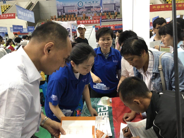 6月26日,经法学院四支招宣队伍在苏州市国际博览中心报考咨询会,吴江中学、吴江高级中学、江苏震泽中学、张家港梁丰中学、常熟市中学、江苏省太仓高级中学等地开展招生宣传。场面火热,家长学生咨询人数较多。