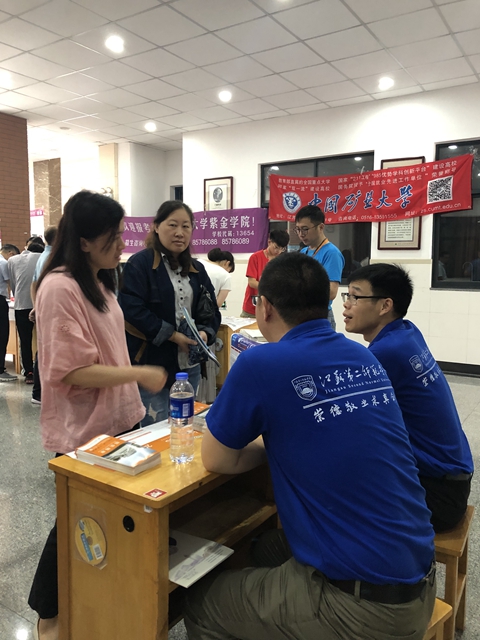 数信学院招宣队由17位老师组成,查圣祥老师作为南京市招生咨询老师接受考生的电话咨询;17位老师在院长朱辉生,党总支副书记凌晓牧、陈艳的带领下赴南京国际展览中心、荔枝广场及南京各区中学开展招生宣传。6月24日,招宣队成员参加了江苏教育频道在荔枝广场组织的高考招生咨询会。6月25日,院领导班子成员带领两位老师、招就处工作人员与体育部两位老师参加了江苏省高校招生就业指导服务中心和江苏省考试院、南京市招办组织的高考招生咨询会。招宣队其他人员进入到南京市第九中学、南京市第二十九中学、江宁高级中学、溧水高级中学、高淳高级中学等五所学校进行招生宣传。6月26日招宣队进入南京市第十三中学、中华中学、六合高级中学等三所学校进行招生宣传。