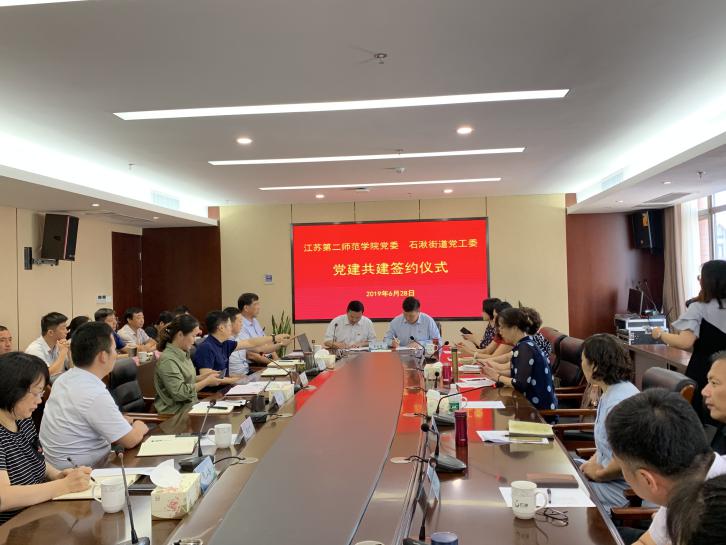 6月28日上午,江苏第二师范学院党委与石湫街道党工委党建共建协议签约仪式在石湫街道办事处举行,这是石湫街道党工委继与半月谈杂志社开展社地党建共建后,又一探索校地党建共建的新实践。