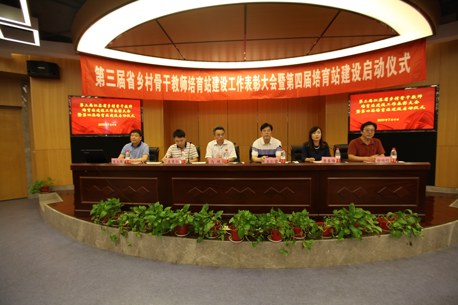 7月4日,第三届省乡村骨干教师培育站建设工作表彰大会暨第四届培育站建设启动仪式在我校举办。党委书记,江苏省教师培训中心、江苏教育行政干部培训中心主任王仁雷,省教育厅教师工作处处长马斌等领导出席活动。全省各设区市教育行政部门相关处室负责人、教师发展机构负责人以及第三届优秀培育站、优秀指导教师、优秀学员代表和第四届乡村骨干教师培育站主持人近300人参加会议。江苏省教师培训中心、江苏教育行政干部培训中心常务副主任季春梅主持仪式。