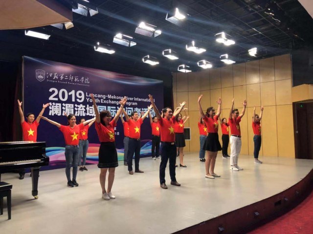 江苏第二师范学院学前教育学院院长尹坚勤介绍,参与此次交流会的访问者包括缅甸、老挝、泰国、柬埔寨及越南等60多名留学生和青年政要。据了解,澜湄合作机制不仅搭建了澜湄区域国家之间互利合作的平台和沟通交流的桥梁,也为推进“一带一路”建设项目起到了重要作用。其中,江苏第二师范学院是作为澜湄计划的最后一站:“我们理应成为青年学生、青年使者的重要阵地,希望能够更多的展示和体现我们中国传统文化艺术的同时,也能够接触和了解东亚各国他们的传统文化和文化习俗。