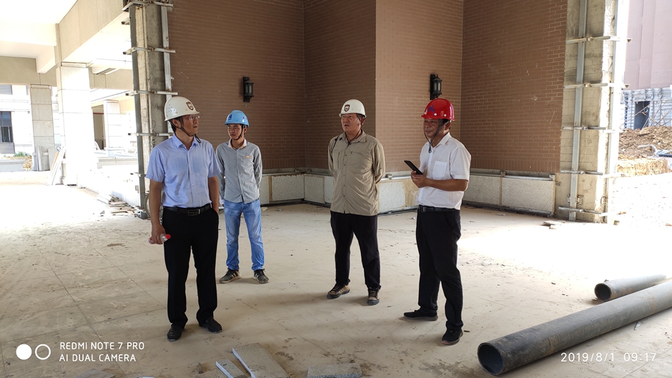 8月1日上午,校长王建、党委副书记潘文赴石湫校区视察项目进展情况并亲切慰问一线工作人员,基建处、建科监理和施工单位有关人员陪同视察。